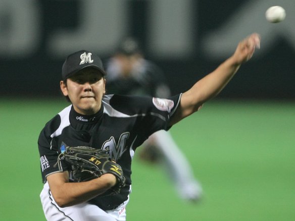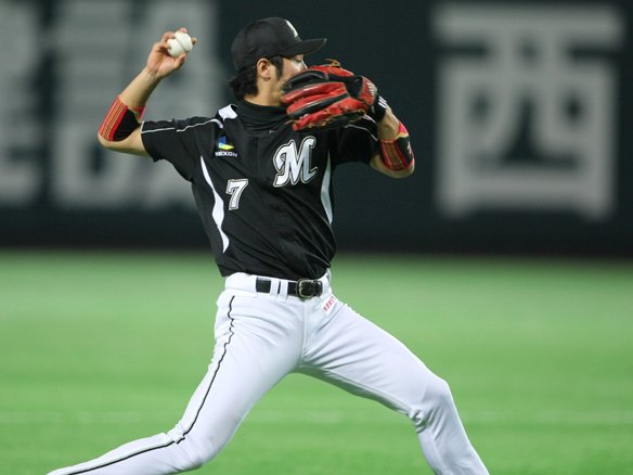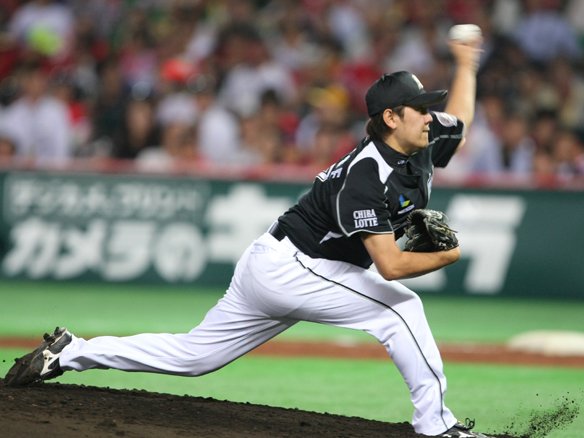 投手 成瀬 4番 小久保 二ゴ 初球のアウトコース低めへのチェンジアップでバットの芯を外し、ボテボテのゴロをセカンド・井口が前進しながら素早くさばいた。 |