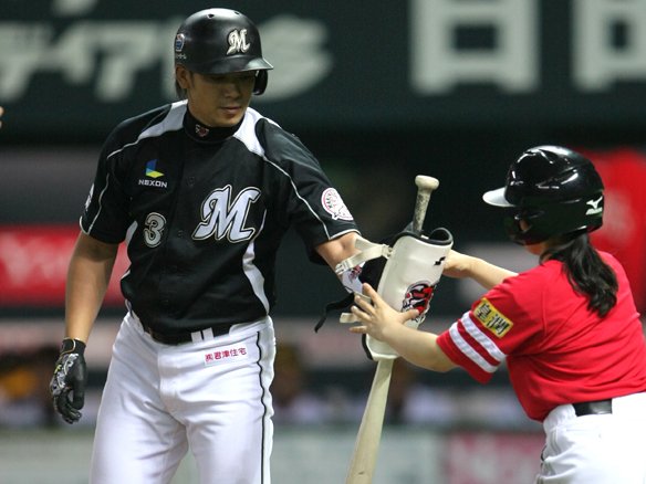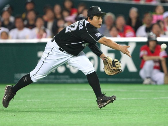 6番 松中 一ゴ失 0-1からの高めへのスライダーを引っ張られると、ファースト・金泰均が打球をつかみきれずライト・サブローの前に転がってしまった。記録は金泰均のエラー。 |