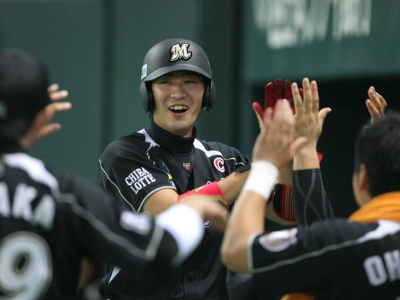 制球を乱した杉内の自滅で2点を先制すると、今江がファイナルステージ初打点となるタイムリーを放ち、さらに2点を追加。一挙に4点を挙げました! 直後の成瀬のピッチングでホークスの攻撃を退け、主導権をつかみたい! |