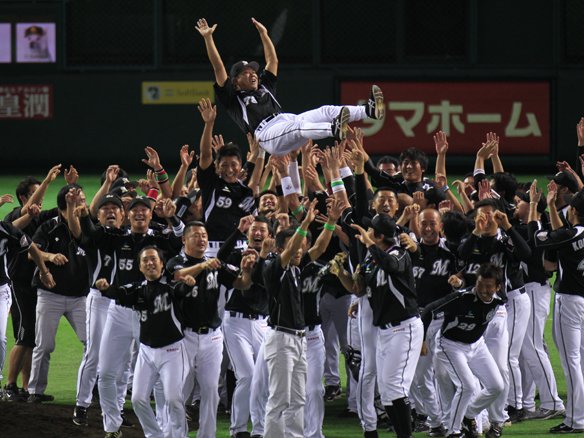 最後もここまで好投を続けてきた成瀬がマウンドへ。最後のバッター小久保が放ったウイニングボールをキャプテン・西岡がつかみ試合終了!! 中盤に杉内から4点を先制すると、終盤にもダメ押し点を奪い、そして成瀬もエースらしい投球を最後まで貫きました。これで5年ぶりとなる日本シリーズ出場決定。西村監督がヤフードームで宙を舞いました!! 「和」の力で崖っぷちから何度も這い上がった勝負強さを発揮すれば、セ・リーグのいかなる相手も圧倒できるはず。必ず、日本シリーズの王座を勝ち取りましょう!!! |