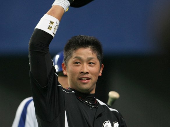 1番 西岡 中安 2-2からの5球目、アウトコース低めのフォークボールに体勢を崩されながらも、巧みなバットコントロールで合わせた打球は、セカンド・井端が飛び込む先に弾んで、センター・英智の前に抜けていく!! 3塁ランナー・岡田がゆっくりとホームイン!! 4対2。 ![]() 2