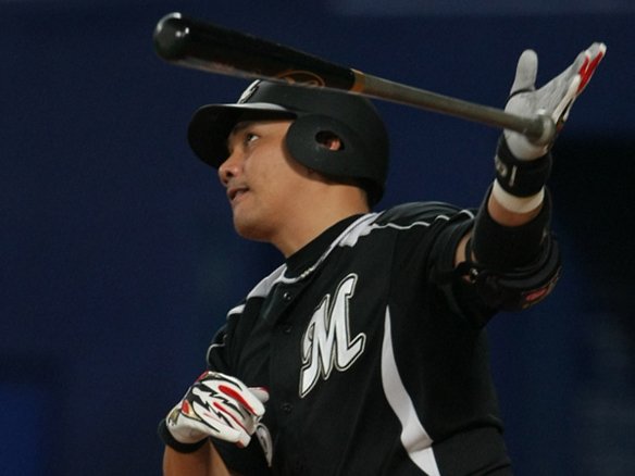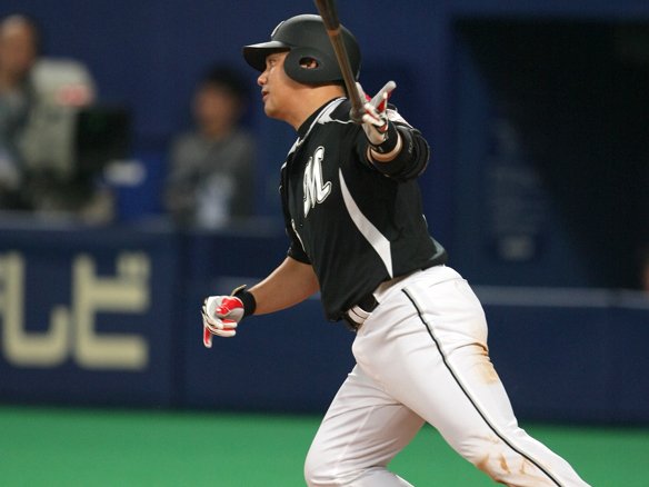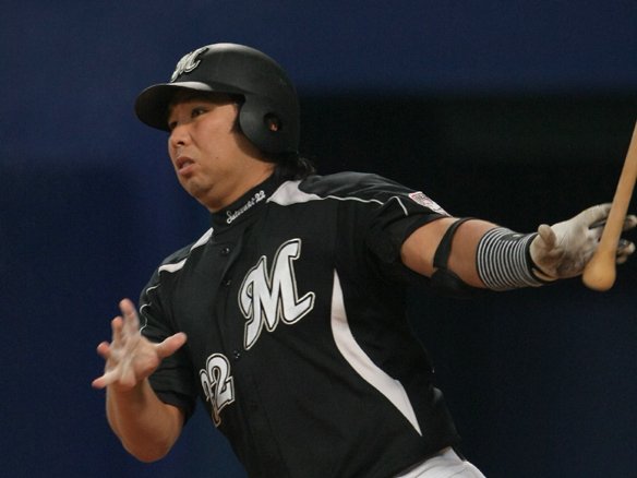 投手 清水 8番 里崎 左安 0-2から真ん中高めに浮いたストレートを強振した打球は、あっという間に三遊間を抜けていった!! |