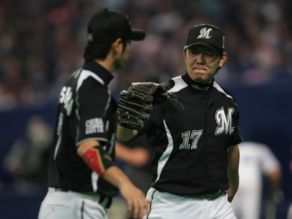 途中出場の岡田が持ち前の足でかき回すと、レギュラーシーズンで206本のヒットを放ったキャプテン・西岡が、うまいバッティングを見せて、1点を追加しました!! さぁ、ここからはマリーンズ自慢の中継ぎ投手陣の出番です!! |