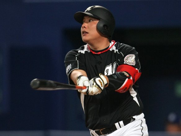 チーム初安打となる中前安打を放つ金泰均