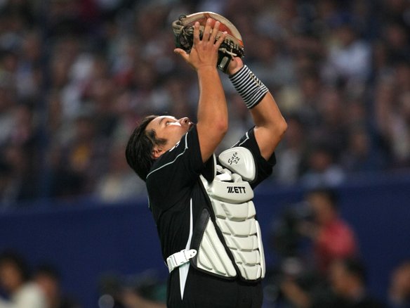 大島のフライをガッチリと捕球する里崎