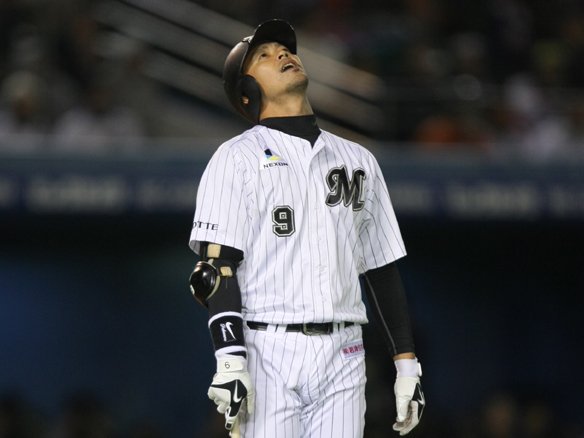 3番 井口 捕邪飛 0-1からインコースのストレートを打ち上げてしまい、フラフラと上がったフライをキャッチャー・谷繁にネクストバッターズサークル付近でキャッチされてしまった。 |