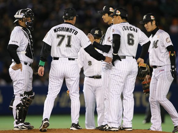 先制点の欲しい打線は西岡の適時二塁打で先制に成功すると、井口にも日本シリーズ第2号となる2ランホームランが飛び出し、一気に3点を奪いました! このリードをきっちりと守り抜いていきたい! |