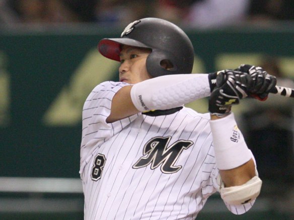 3番 金宰ヒョン 二ゴ 2-2からアウトコース低めのカットボールで詰まらせ、勢いのないゴロをセカンド・井口が定位置で丁寧にキャッチした。 |