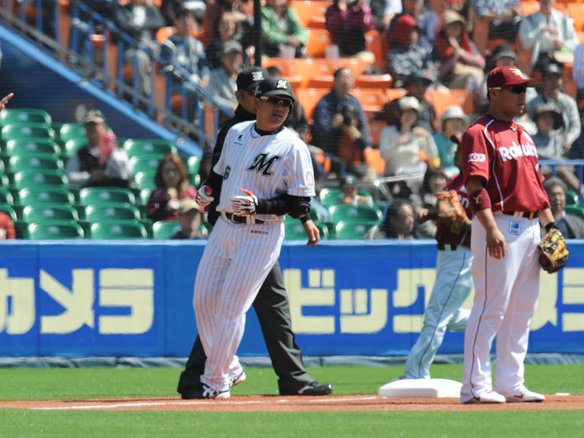 マリーンズが誇る打の職人・福浦が記録を打ち立てる一打を放ちましたが、生還させることはできませんでした。ここはイーグルスの攻撃をしっかり打ち取り、立て直しましょう!! |