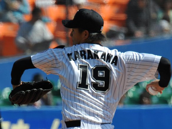 地元・千葉の期待をその背に受け、4年目のシーズン初マウンドを迎えた先発・唐川。フォアボールのランナーを出したものの、無失点で立ち上がる好発進を見せました!! |