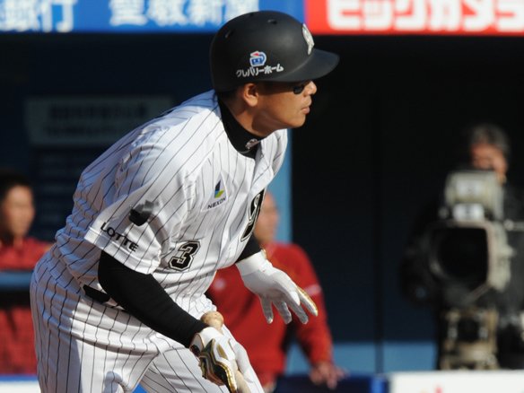 2番 聖澤 投犠失 初球、すかさずバントの構えを見せられて、真ん中高めのスライダーを3塁側に転がされた打球は、ピッチャーが拾い上げて1塁へ送球。しかし、1塁のベースカバーに入ったファースト・金泰均の足とベースが合わず、捕球できなかった。その間に1塁ランナーは3塁へ。記録は送りバント成功と金泰均のエラー。 |