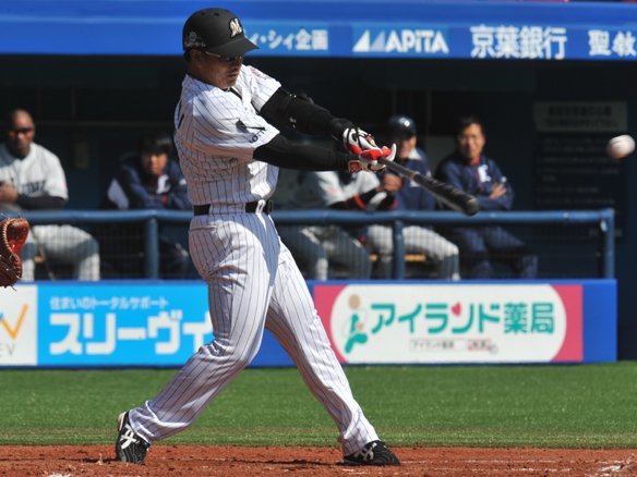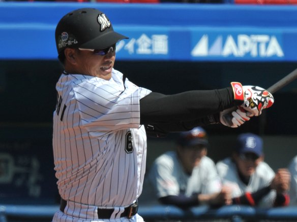 息の詰まる接戦を打ち破いたのはマリーンズ! おととい4打点の井口が今日も先制点となる適時打を放ちました! |