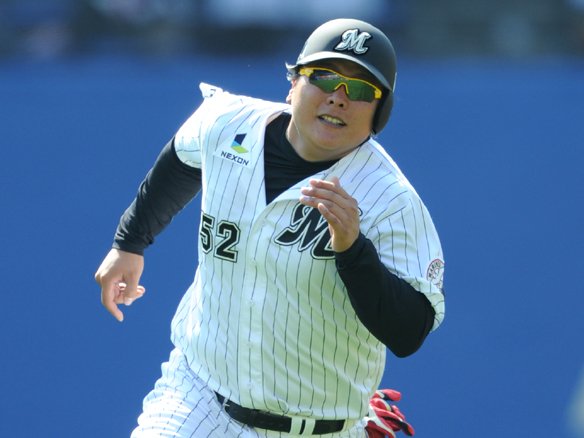 里崎の中前安打で一気に3塁へ激走する金泰均