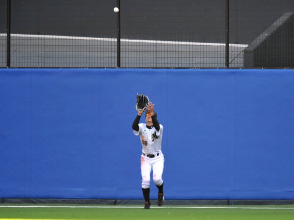 5番 フェルナンデス 右飛 2-1から外角へのボールを右方向へ打ち返されるも、ライトがバックしながら落ち着いてキャッチした! |