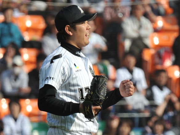 最終回は今日初めての四球と安打で得点圏にランナーを背負いますが、7回に追加点を挙げた荻野貴の好プレーもあり無失点で締めて試合終了! 先発の成瀬は昨年4月17日以来の完封勝利で、見事今季初勝利を挙げました! |
