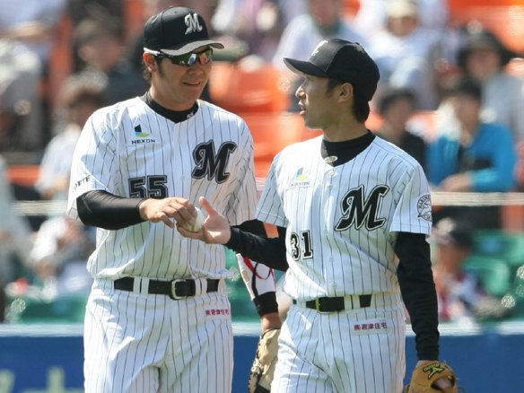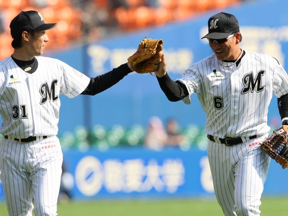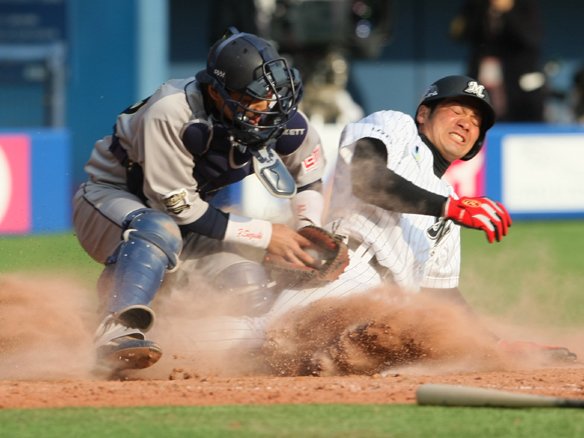 里崎に強い当たりが出るも、相手の守備範囲に飛んでしまい得点なりませんでした。リードはわずか1点。集中力を保って相手の攻撃を抑え込んでいきたい! |
