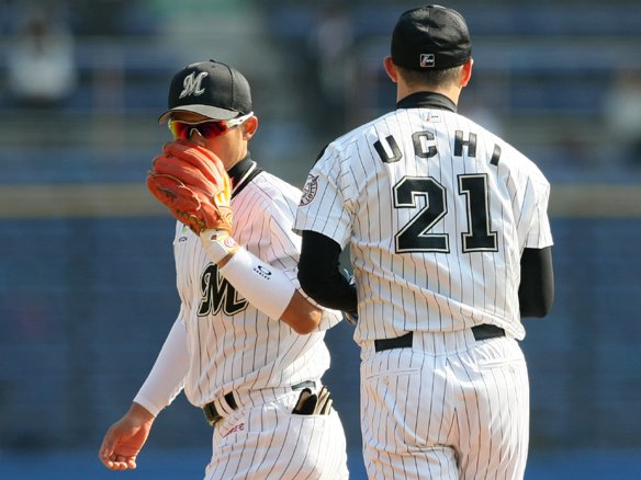 2アウトから福浦が2ベースヒットを放ち勝ち越しのチャンスを作りましたが、ここは相手の気迫に押されてしまいました。9回表を無失点で抑え、サヨナラ勝ちへの気運を高めていきましょう! |