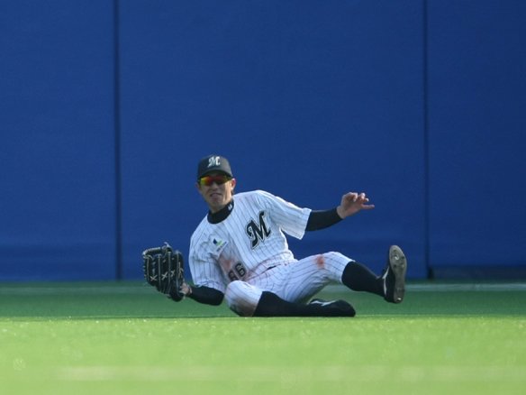 8番 神戸 中飛 1-2から低めに落ちるスライダーをうまく捉えた打球は左中間への大きな当たりとなるも、回り込んだセンターにランニングキャッチされた。 |