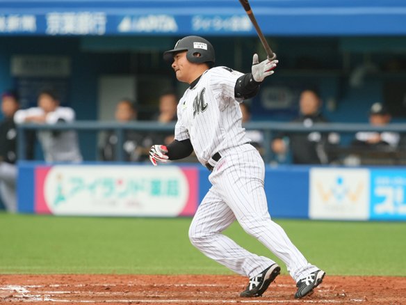 3番 井口 左安 0-1から低めに落ちるカーブをすくい上げ、左中間の浅いところへ持っていった! |