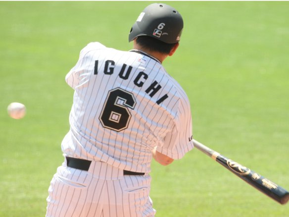 3番 井口 左安 2-2からの内角低めの変化球を振り抜くと、ドライブのかかった打球はショートの顔とグラブの間を抜けていった! 1塁ランナーは一瞬戻ったため2塁ストップ。 |