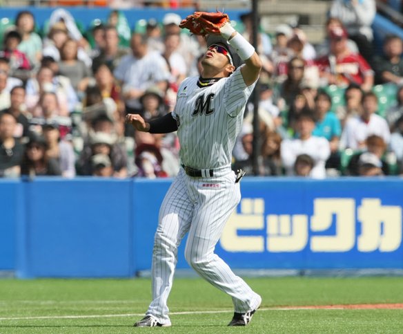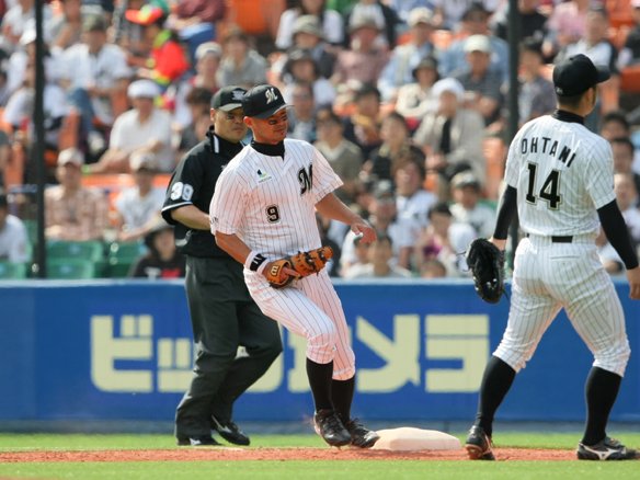 8番 里崎 遊併 1-2からの内角低めのストレートを引っ張るも、打球はショートの正面に。これをさばかれ、6-4-3のダブルプレーに打ち取られてしまった。 |