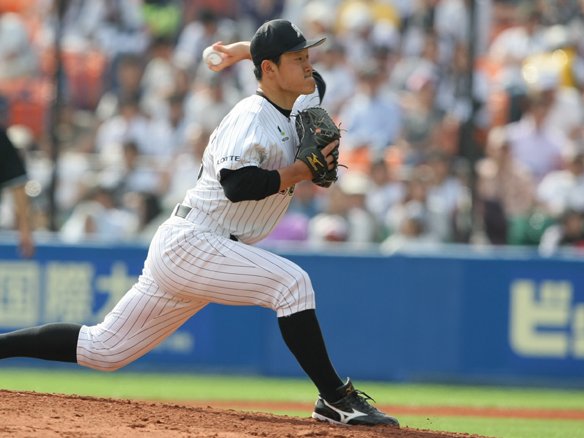 投手 大谷 5番 高須 右飛 フルカウントから外角高めのストレートを打たせると、高々と上がった打球をライトがポール近くのフェンス手前でしっかりキャッチした。 |