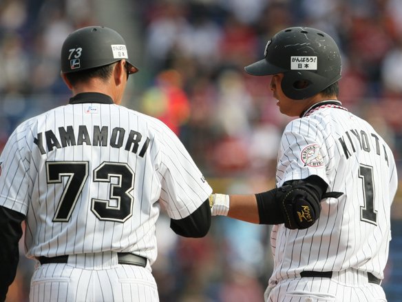 投手 山本一 【千葉ロッテ選手交代】 代打・大松→ショート・塀内 |