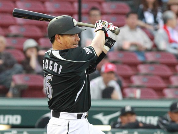 3番 井口 中飛 0-1から高めのストレートに差し込まれてしまい、高々と上がった打球を右中間の真ん中でセンターに捕球された。 |
