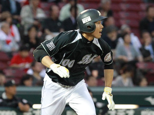 2番 東出 二ゴ 2-1からの変化球を引っ張られた打球は、一二塁間へ転がった。抜けようかという当たりにセカンド・井口が追い付き、しっかりと処理! |