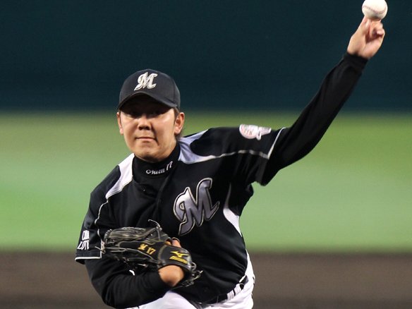 投手 岩田 4回に続いてこの回も2人のランナーを出したマリーンズ打線でしたが、無得点に終わってしまいました。微妙に球を変化させてテンポ良く投げ込んでくる岩田を打ち崩したいところです!! |