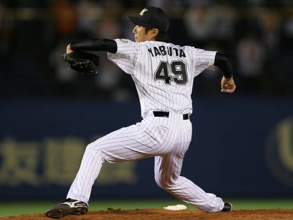 投手 渡辺 3番 長野 空三振 1-2から内角へブレーキの利いたカーブで空振りを奪った!! |