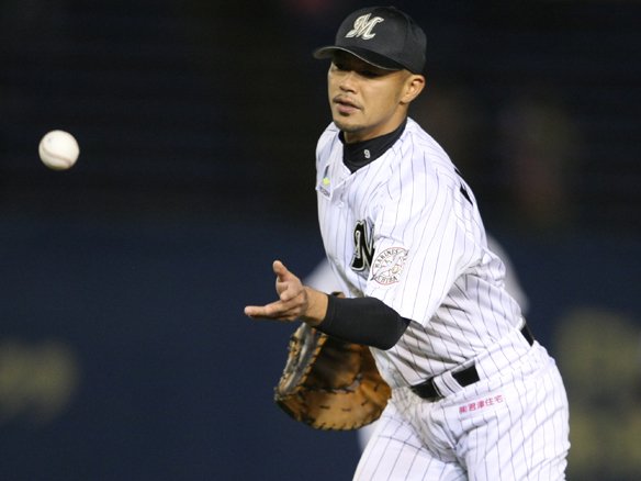 3番 長野 三ゴ 2-2からの外角低めの変化球を引っ掛けさせると、打球はサードの正面に。送球がハーフバウンドになるも、ファースト・福浦が落ち着いたミットさばきを見せこれをしっかりキャッチ!! |