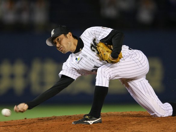 投手 渡辺俊 渡辺俊は持ち前の風を巧みに使った投球で、この回を3者凡退で切って取りました! |