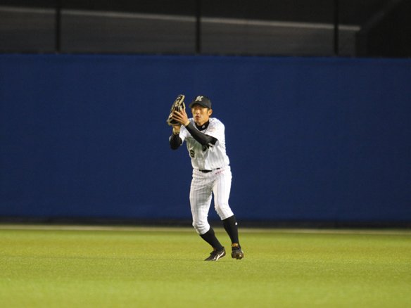 投手 館山 1番 岡田 左飛 1-1から真ん中へのボールを打ち損じてしまった打球は、レフトに前進したところで捕球された。 |