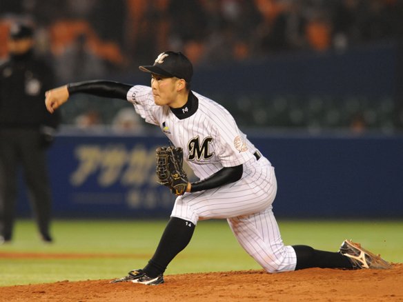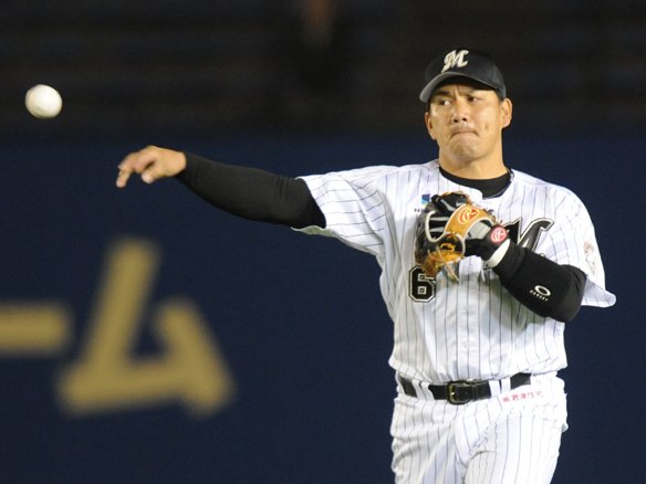カルロス・ロサは田中を歩かせてしまうも、自らの力強い直球でホワイトセルを三振に仕留めると、里崎が盗塁を仕掛けたランナーを刺し相手の攻撃を封じました! リードを許す展開の中でも、マリーンズらしい堅守は健在です! |