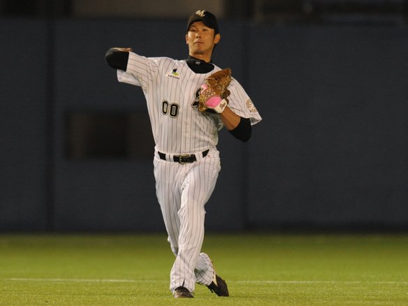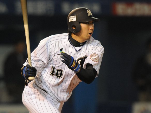 5番 里崎 中飛 フルカウントから外角へのボールに泳いで打ち上げた打球は右中間の浅い所へ上がり、前進してきたセンターにキャッチされた。 |