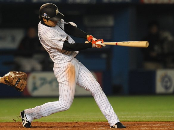 5番 里崎 三ゴ 1-1から低めに落ちる変化球を引っ掛けてしまい、サードに捕球されると1塁へ送球された。 |