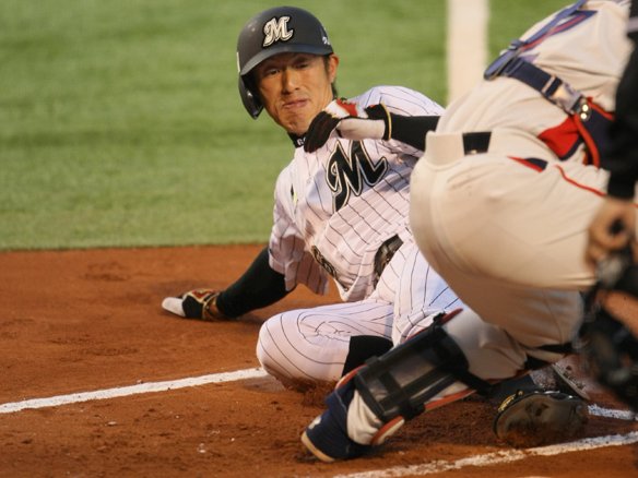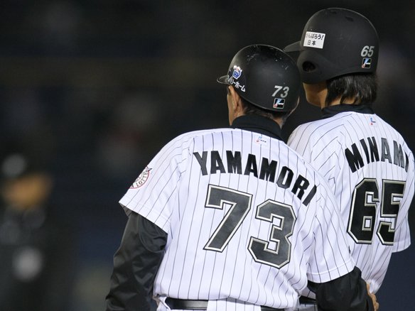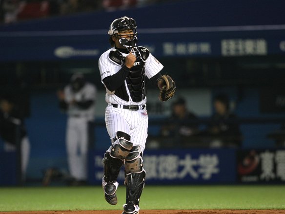 5番 里崎 四球 3-0から内角高めに抜けた変化球を冷静に見送った。 |