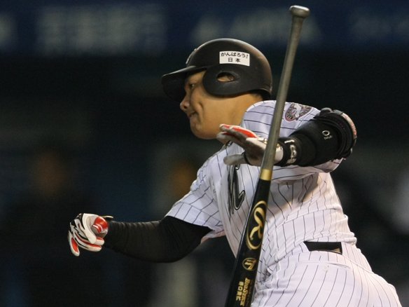 5番 里崎 右飛 初球、低めのストレートを右方向へ打ち返し大きな打球となるも、ライトにウォーニングゾーンまで下がったところでキャッチされてしまった。 |
