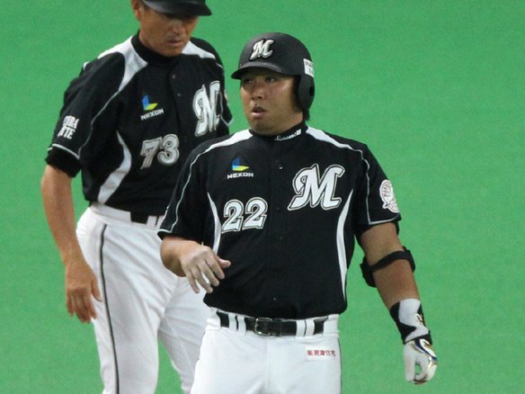 【千葉ロッテ選手交代】 1塁ランナー・神戸→代走・高口 9番・的場→代打・金澤 |
