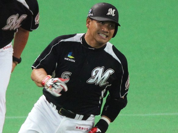 チーム初安打となる右前安打で出塁した里崎