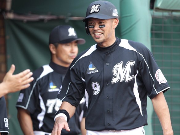 7番 里崎 投犠選 初球をバントで転がすと、ピッチャーが打球をつかみ3塁へ送球。しかしサードがボールをこぼし、セーフとなった! 記録はピッチャーの犠打野選。 |