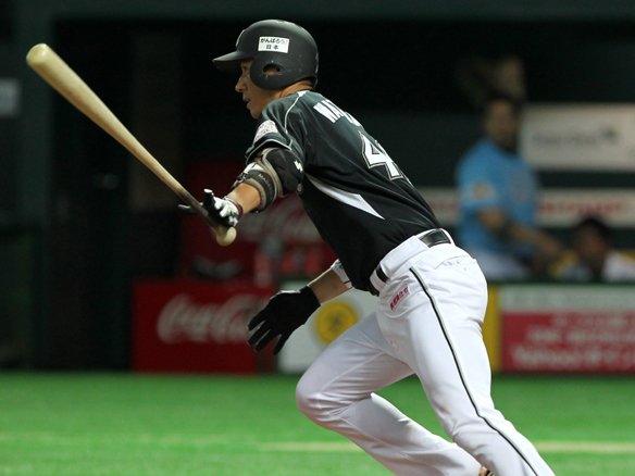 1番 川崎 左安 1-2からの5球目、外角低めへのシュートを流し打たれると、打球はレフトの前で弾んでしまった。 |