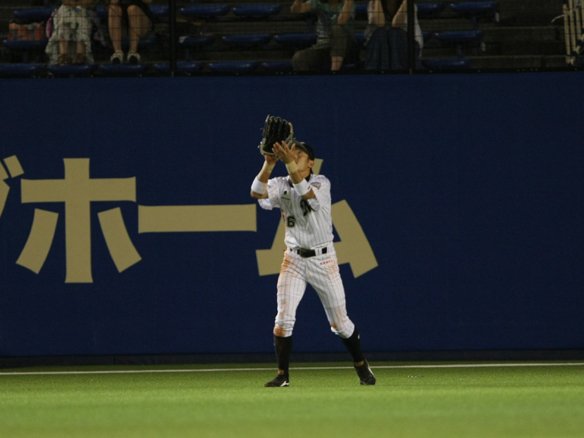 8番 炭谷 中飛 初球、高めのストレートを打ち上げさせた打球は、センターがゆっくり落下点に入ってキャッチした! |