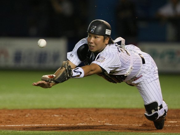 女房役・里崎のダイビングキャッチで送りバント阻止