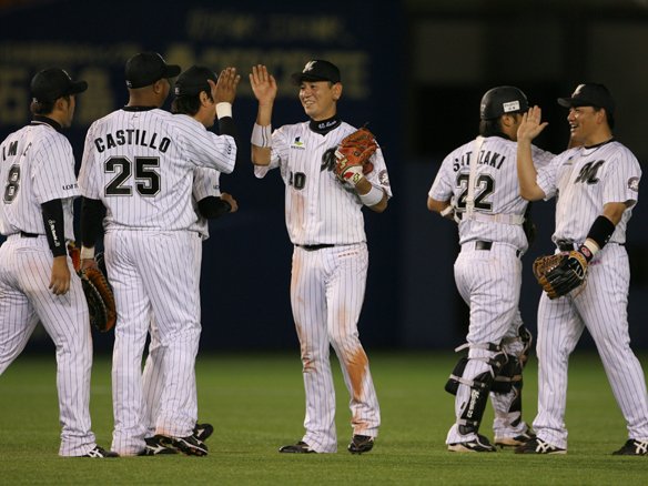 投手 西口 8番 里崎 三ゴ 2-2から内角高めのストレートを引っ張り強いゴロとなるも、サードにさばかれた。 |