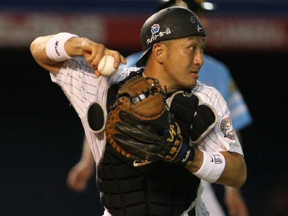 【千葉ロッテ選手交代】 8番・的場→代打・里崎 |