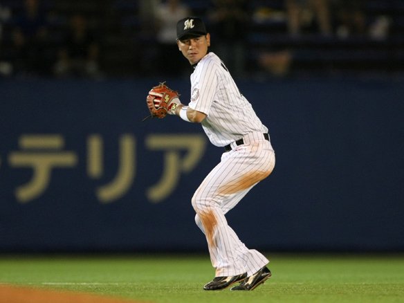 8番 里崎 遊ゴ 1-0から低めのスライダーを引っ張り痛烈なゴロとなるも、ショートに三遊間で回り込んでおさえられると、素早く2塁に送球された。 |