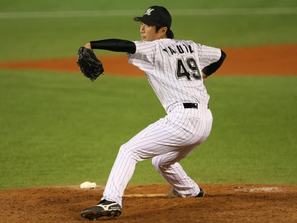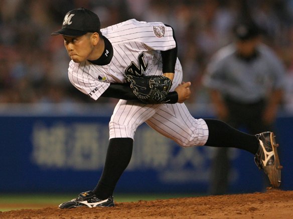 投手 杉内 6番 福浦 投ゴ 1-2から内角へのストレートに詰まらされたゴロは、ピッチャーの正面に転がった。 |