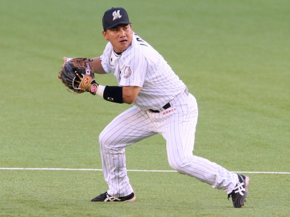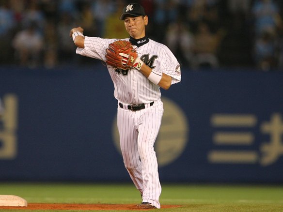 投手 大谷 1番 川崎 二ゴ 初球、内角へのカットボールを引っ張られた痛烈なゴロは、セカンド・井口が正面に回り込んで体で止めると、ボールを落ち着いて拾い上げ、1塁へ送球した! |